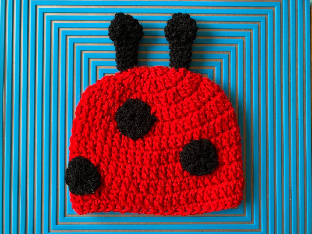 Using size 4 yarn (worsted or medium weight yarn) with a J-10 (6.0 mm) needle in RED
