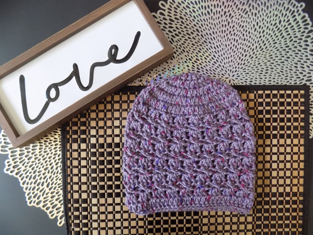 This beanie is made with stitches of a granny square sitting on top of a chain “throne” in the body of the hat. My friend Gracie’s nickname was “the Queen”, so this beanie is also known as the “Gracie Beanie” in her honor.
