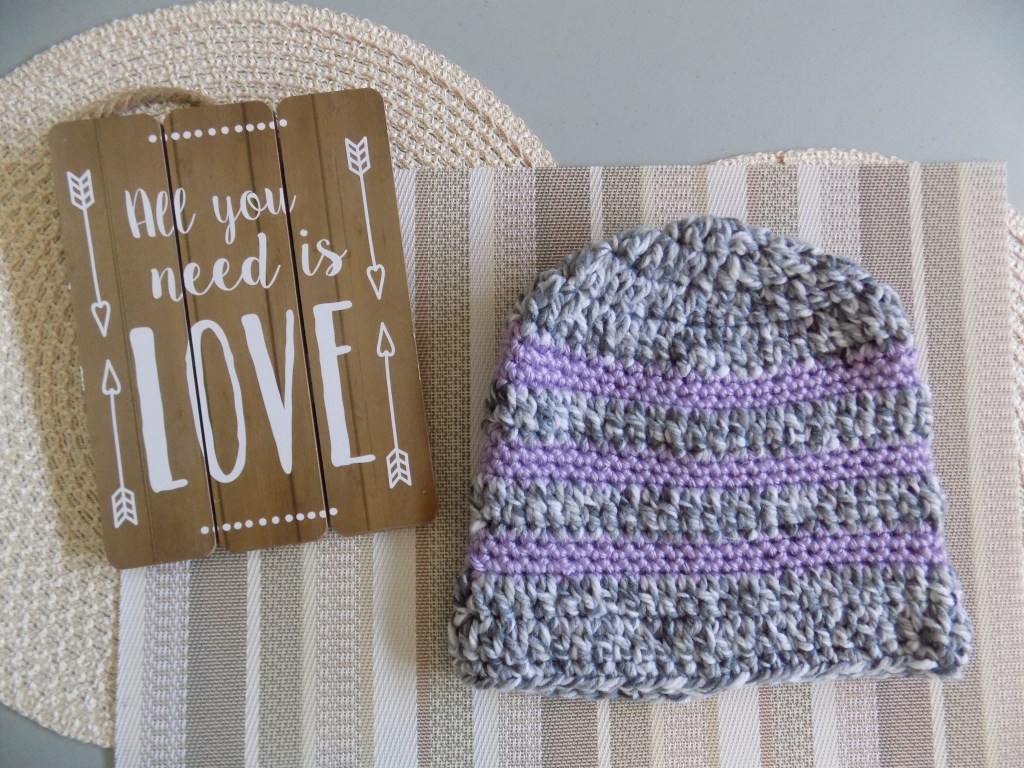 This beanie is made by alternating 3 rows of single crochet and double crochet in the body of the hat.