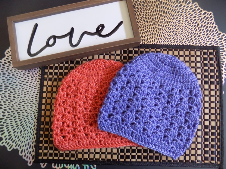 This beanie is made with V stitch and Double V stitch intermixed in the body of the hat.