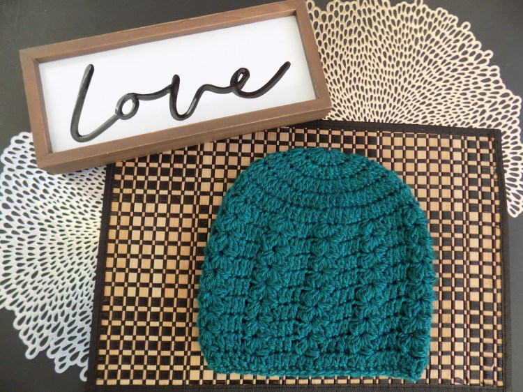 This beanie is made with rows of Puffed V stitch in the body of the hat.