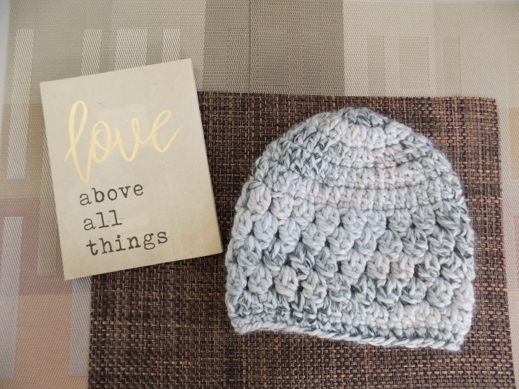 This beanie is made with rows of skinny puff stitches in the body of the hat. Skinny puff stitches work better and look cleaner in a beanie with those super bulky yarns.