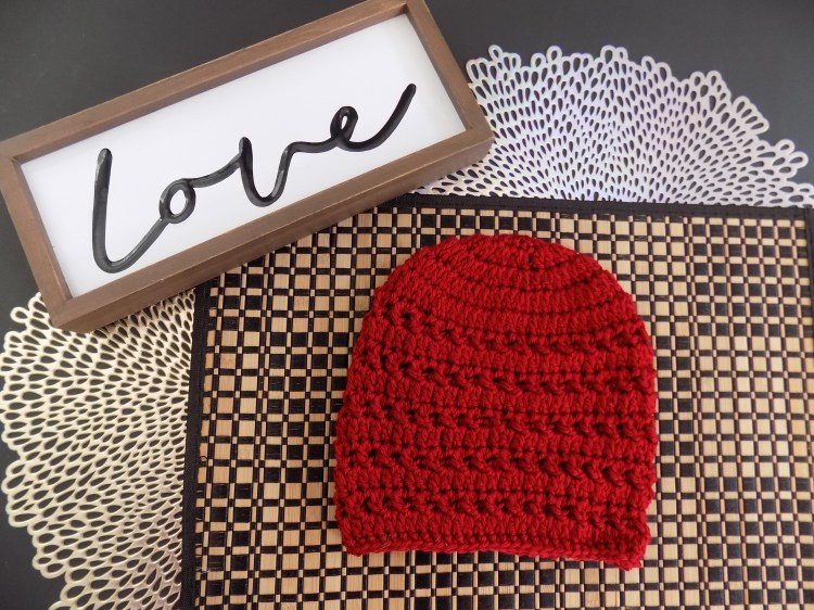 This beanie is made with rows of Criss Cross stitches alternating with rows of double crochet stitches in the body of the hat..