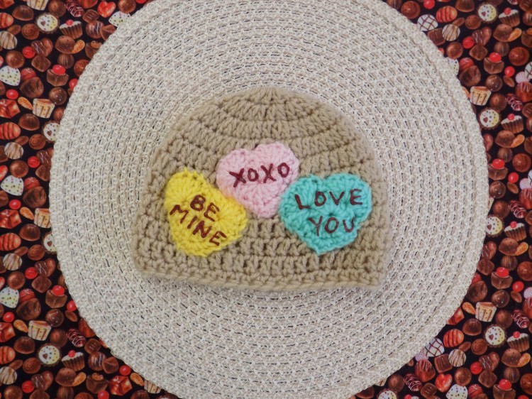 - Sew hearts onto beanie as you see fit between Rows 4-10