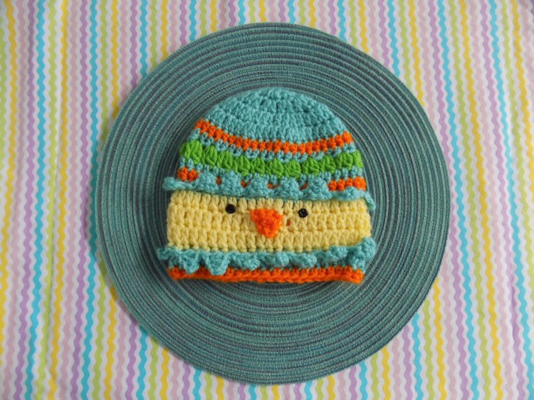 Row 12 – change to LIGHT YELLOW colored yarn, ch 2 (this counts as your first dc of this row), dc in each st all the way around to the end. Join with sl st to first dc. (44 dc)