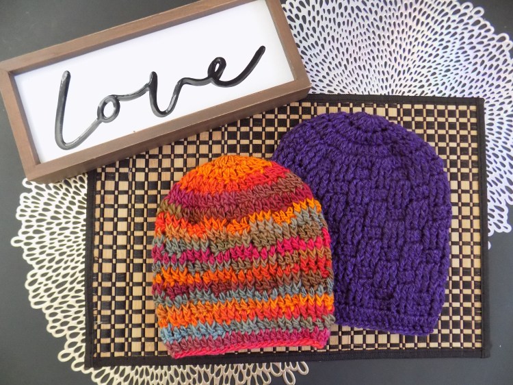 This beanie is made by alternating triplets of long Front Post Double Crochet stitches in the body of the hat.