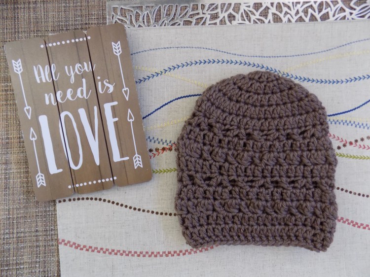 This beanie is a variation of our peace, love, and hugs beanie, where you have rows of v stitch (peace) and criss cross stitch (love), criss cross stitch (love) and puff stitches (hugs), OR criss cross stitch (love) and puff stitches (hugs), v stitch (peace) and puff stitches (hugs) OR v stitch (peace) and criss cross stitch (love), v stitch (peace) and puff stitches (hugs) over the body of the beanie.