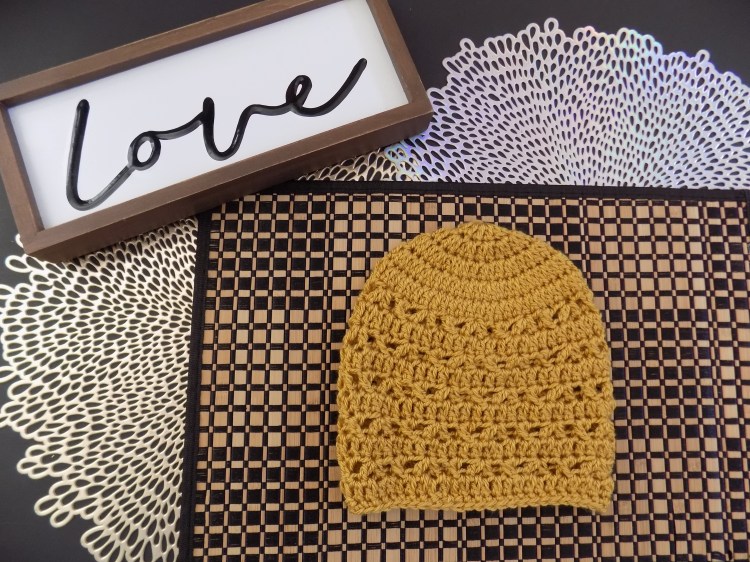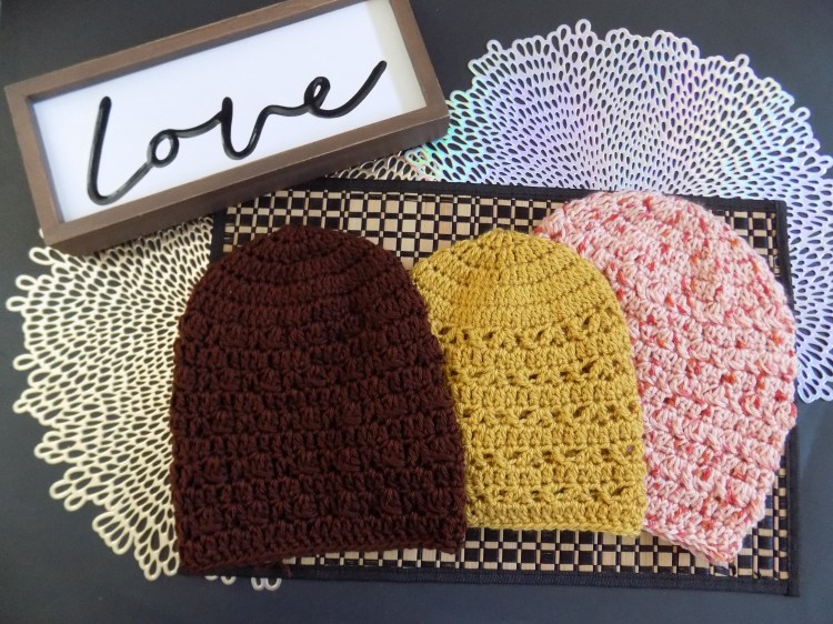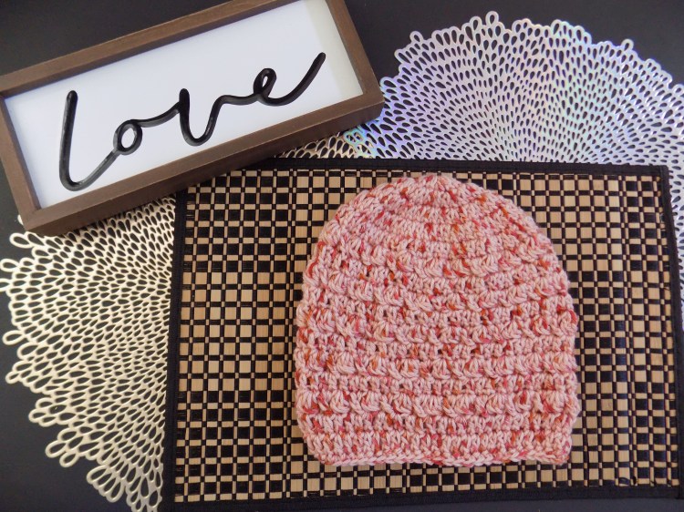 This beanie is a variation of our peace, love, and hugs beanie, where you have rows of v stitch (peace) and criss cross stitch (love) OR criss cross stitch (love) and puff stitches (hugs) OR v stitch (peace) and puff stitches (hugs) over the body of the beanie.